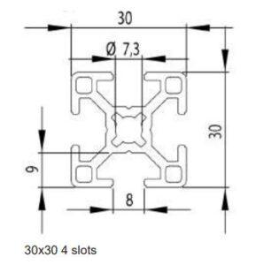| Strut Profile AP30 30×30 4 Slots | 2.6 | 2.6 | 1.8 | 1.8 | 0.8 | AX-AP3030-04 |